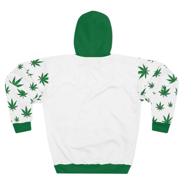 This cozy all-over print hoodie wears its vibe loud and proud. Soft-feeling polyester holds bright, leafy graphics across the sleeves and chest, while a deep green hood, cuffs and hem frame a bold central badge that reads “STAY HIGH.” The roomy kangaroo pocket and adjustable drawstring hood make it an easy go-to for laid-back evenings, festival runs, or chill sessions with friends. Lightweight but substantial, the fabric keeps its shape and dries quickly, so the colors stay fresh wash after wash. Cut and sewn for full-pattern coverage and assembled in the USA, it’s a statement piece for anyone who leans into relaxed, counterculture style.
